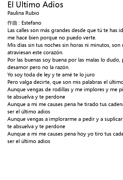 | Pero valga decirte, que son mis palabras el u ltimo adios el u ltimo adios... | |