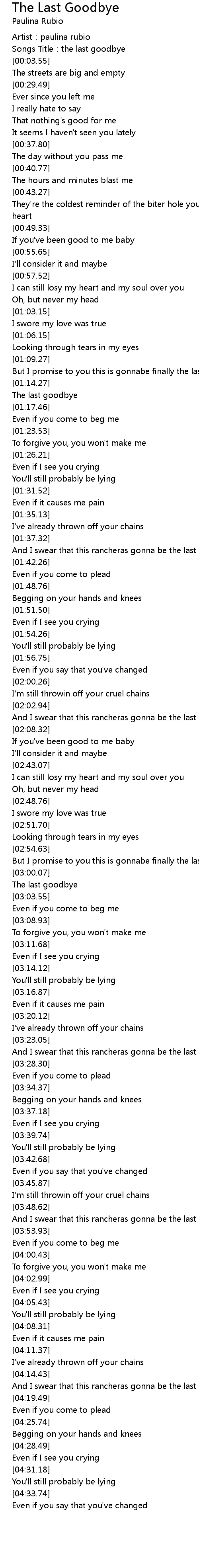 | [03:49.62] | And I swear that this rancheras gonna be the last goodbye |