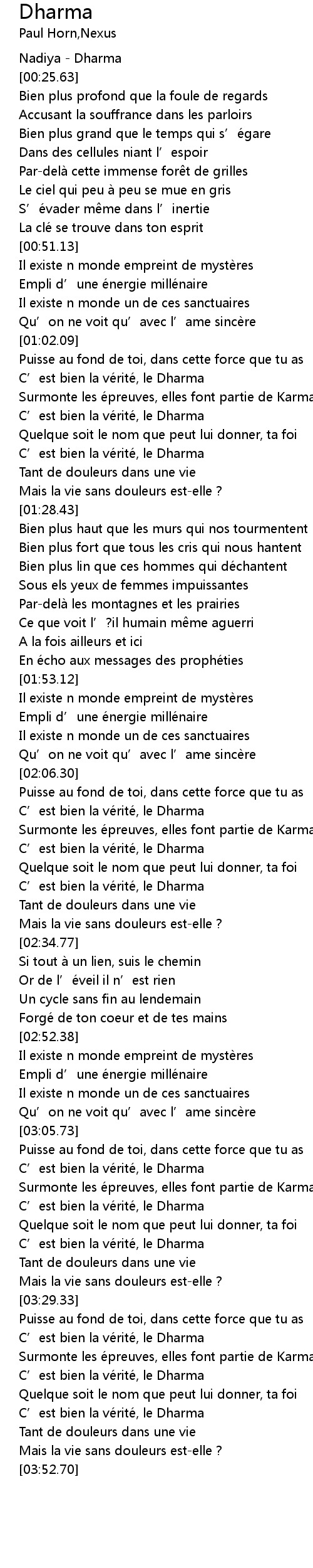 | [02:09.99] | C' est bien la ve rite, le Dharma |