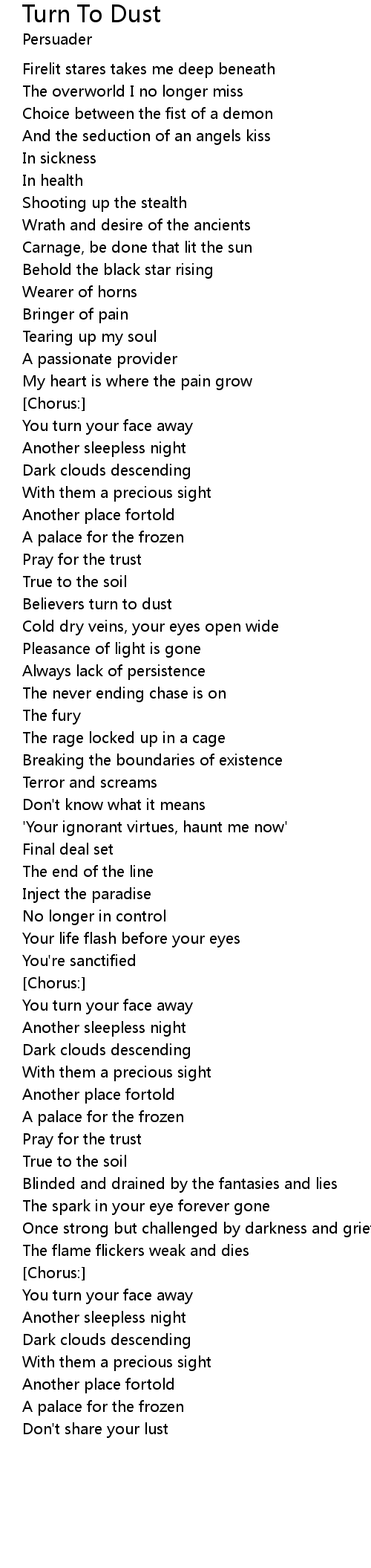 Turn To Dust Lyrics