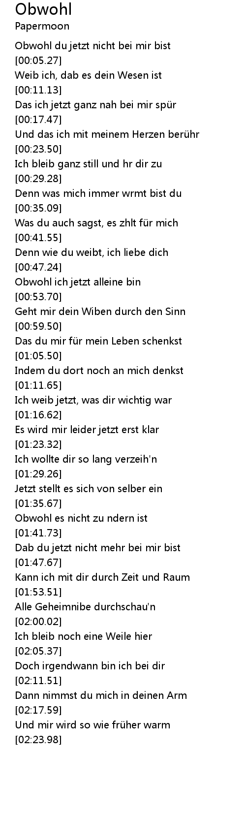 | [00:00.33] | Obwohl du jetzt nicht bei mir bist |
