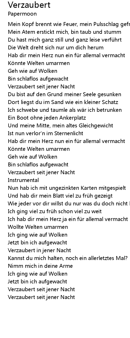 | Du hast mich ganz still und ganz leise verfü hrt | |