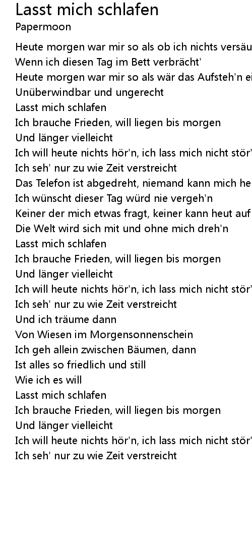 | Heute morgen war mir so als w r das Aufsteh' n eine Hü rde | |