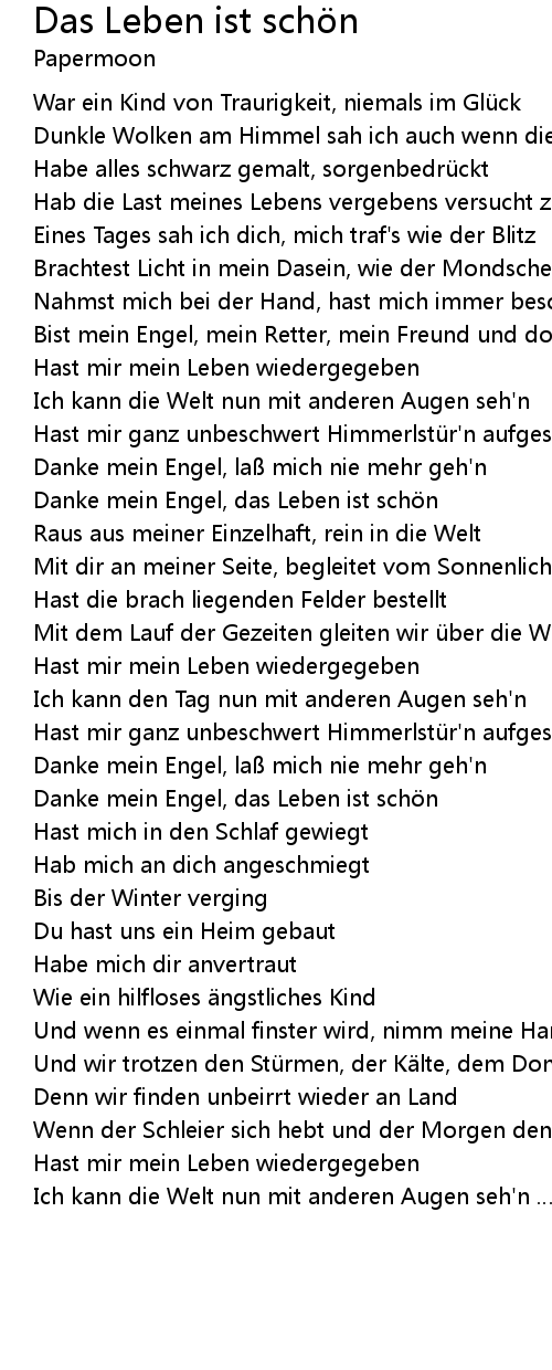 | Bist mein Engel, mein Retter, mein Freund und doch nie mein Besitz | |