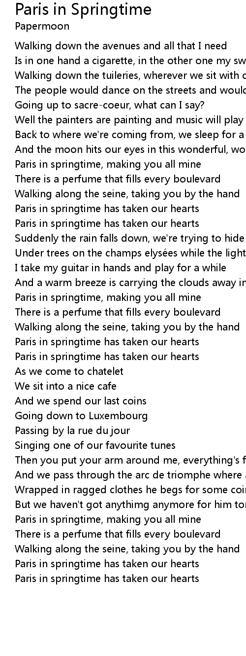| Walking down the tuileries, wherever we sit with our six-string | |