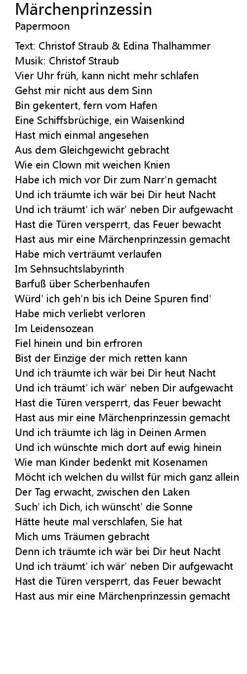| Hast aus mir eine M rchenprinzessin gemacht |