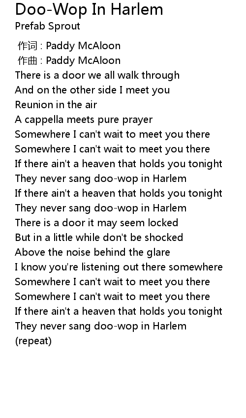 | [02:41.293] | They never sang doo-wop in Harlem |