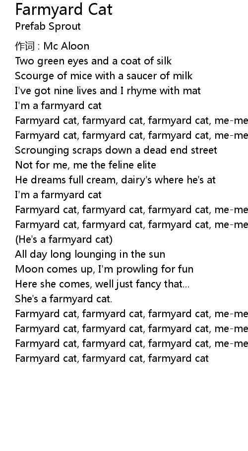 | Farmyard cat, farmyard cat, farmyard cat, me-me-yow | |