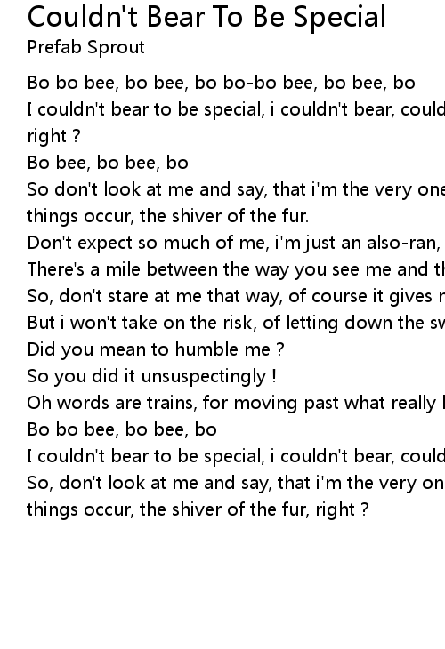 I couldn't bear to be special, i couldn't bear, couldn't bear. i couldn't bear, right ? |