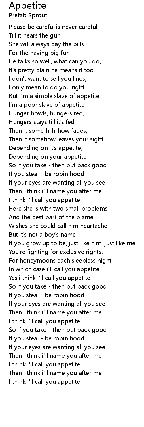 In which case i'll call you appetite |
