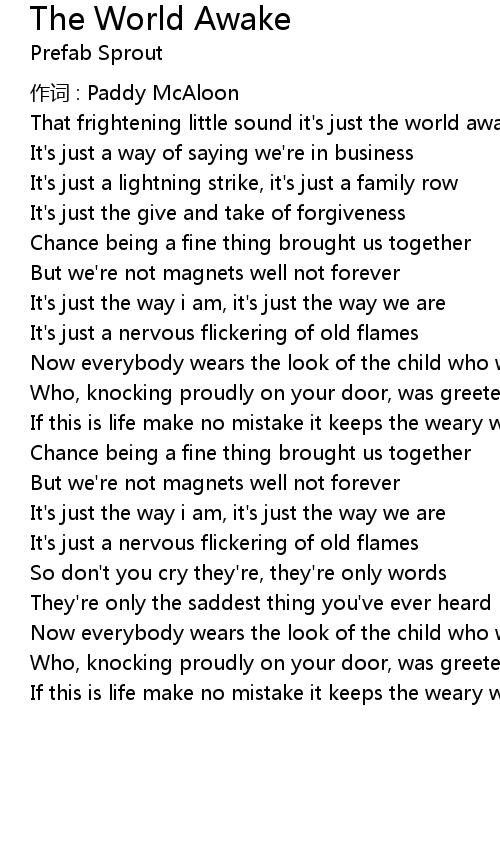 | 作词 : Paddy McAloon | |
