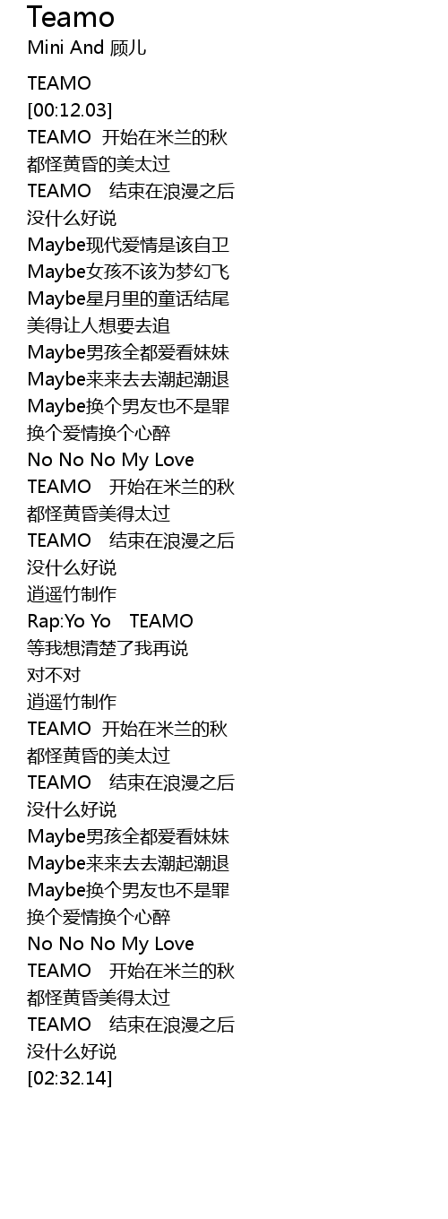 | [02:13.11] | TEAMO 开始在米兰的秋 |