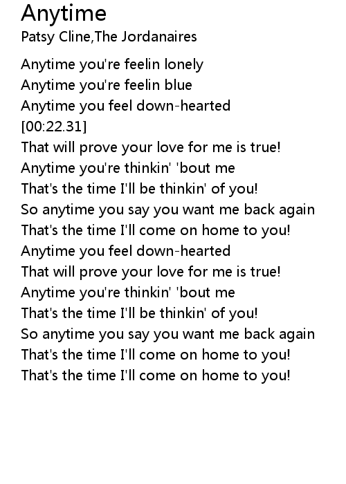 Anytime you're feelin lonely |