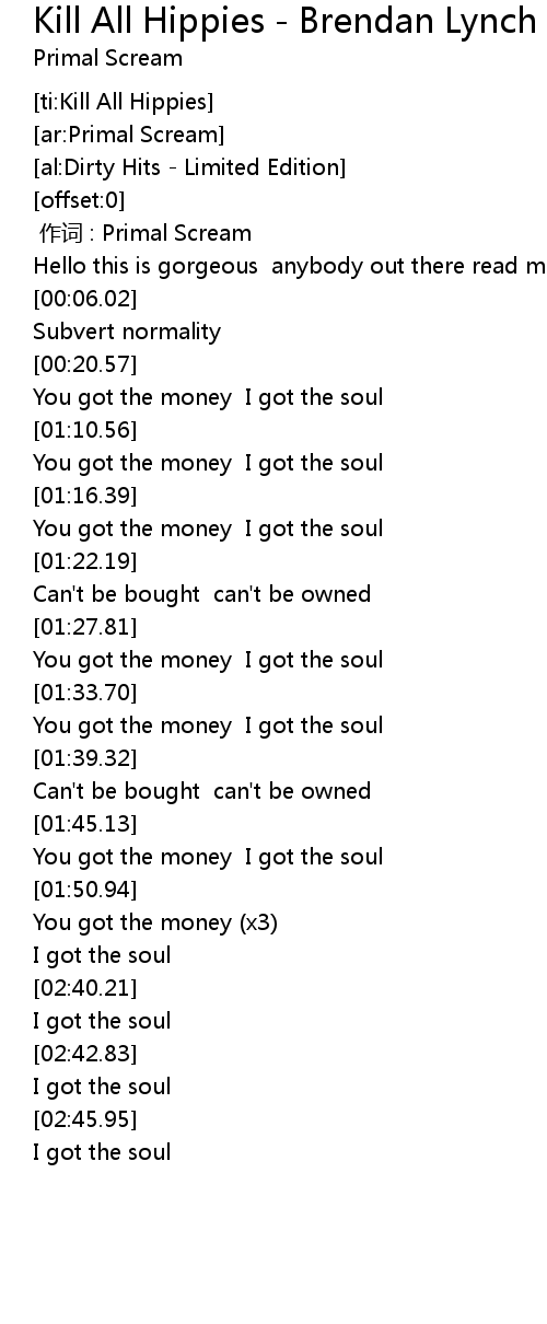 | [00:02.02] | Hello this is gorgeous anybody out there read me |