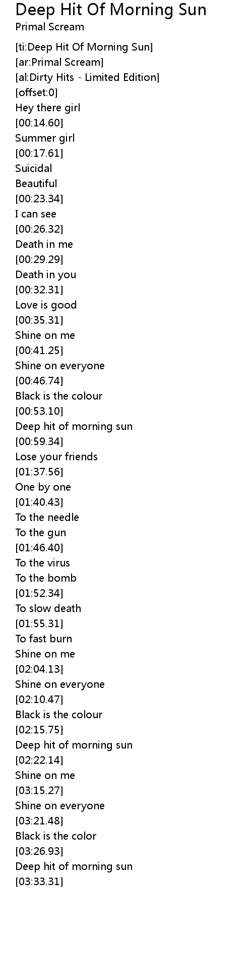 | [ti:Deep Hit Of Morning Sun] | |
