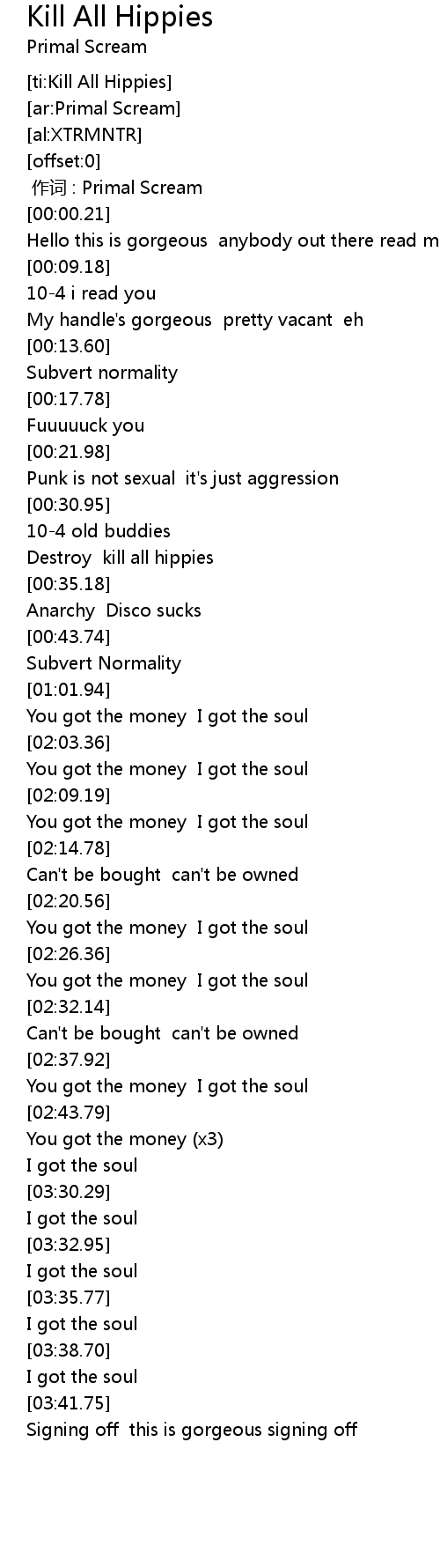 | [00:27.97] | Punk is not sexual it's just aggression |