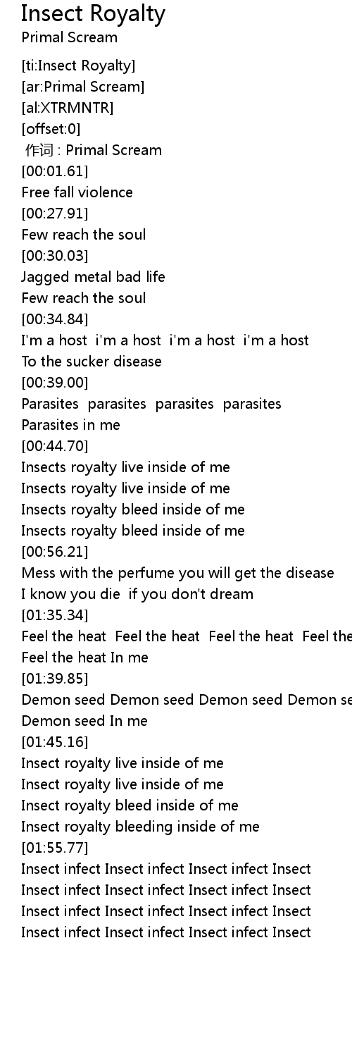 | [00:53.14] | Insects royalty bleed inside of me |
