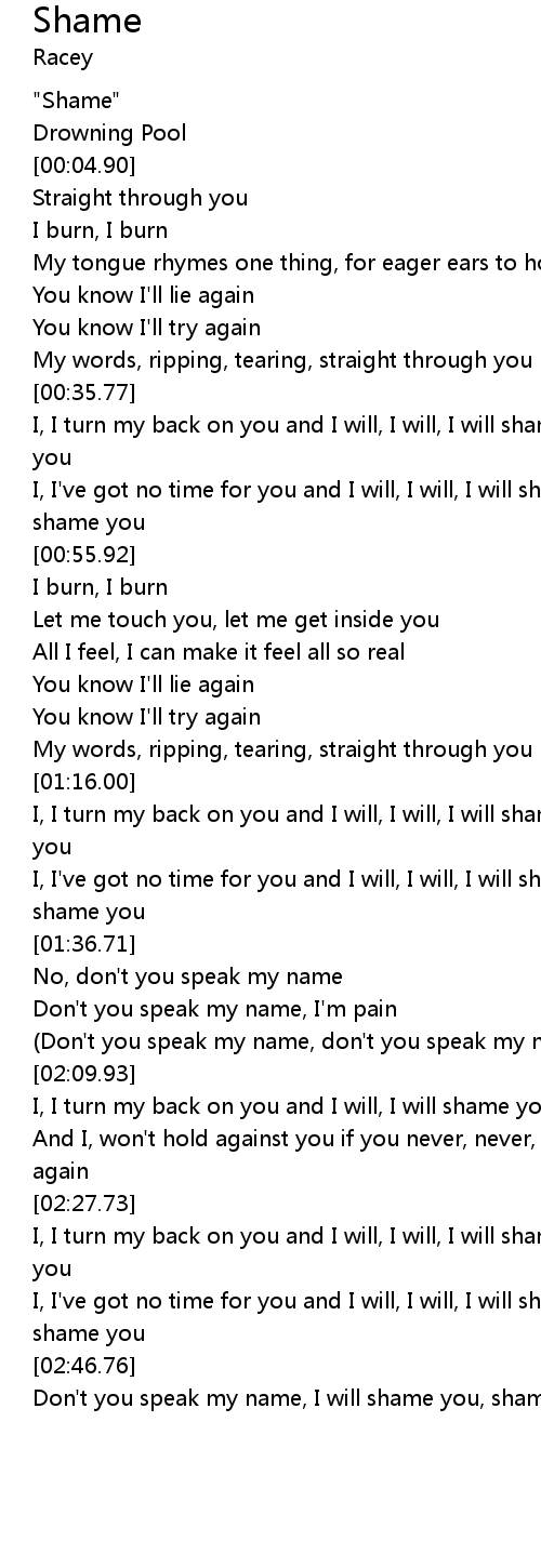 I, I turn my back on you and I will, I will, I will shame you, shame you |