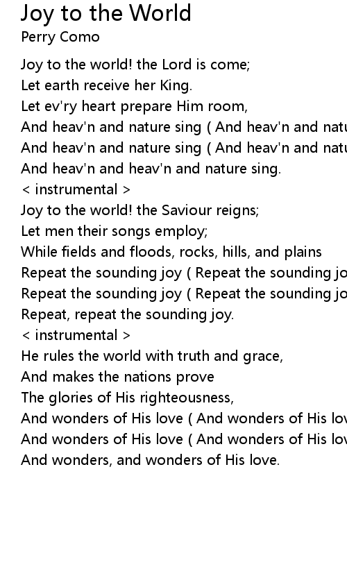 Joy to the world! the Saviour reigns; |