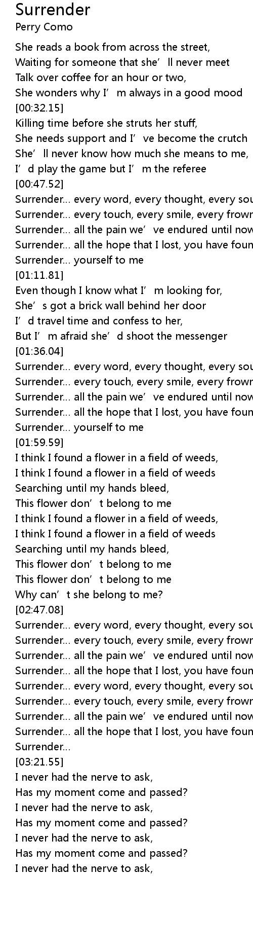 | [02:49.59] | Surrender… every word, every thought, every sound |