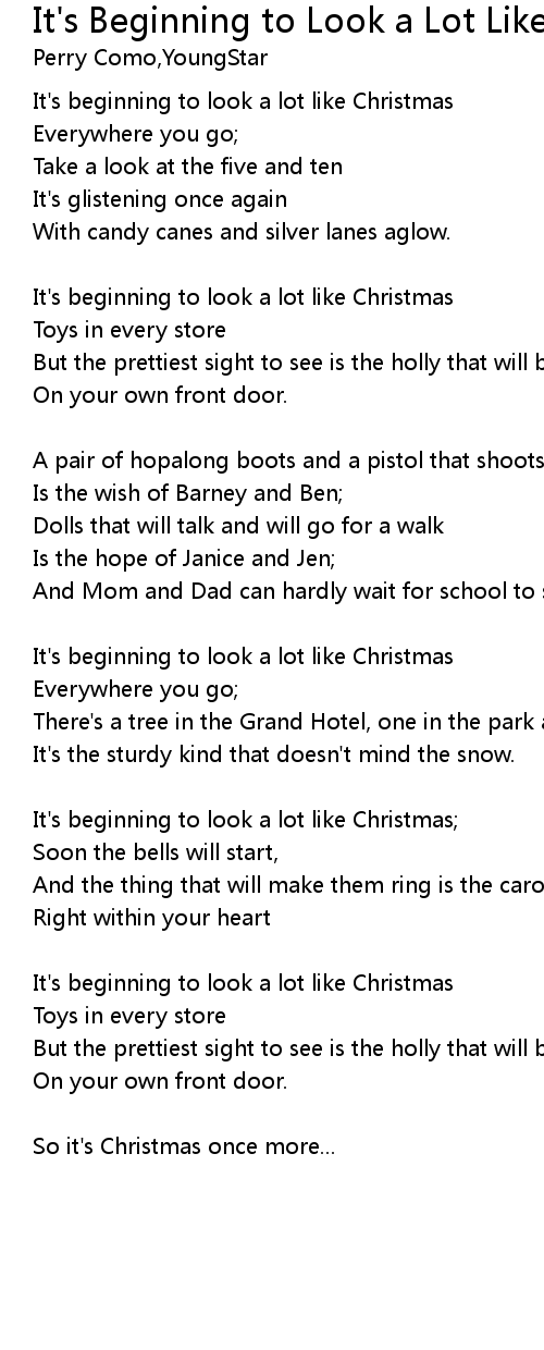 | Song | It's Beginning to Look a Lot Like Christmas |