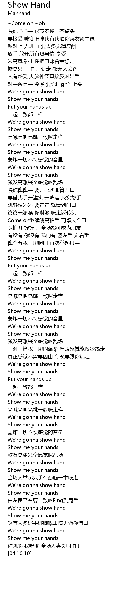 | [04:01.14] | mi you tai duo bang shou bang jiao kai shi qing qu zuo ni jie kou |