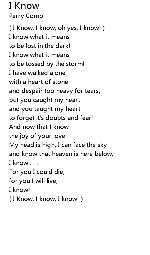 | ( I Know, I know, oh yes, I know! ) | |