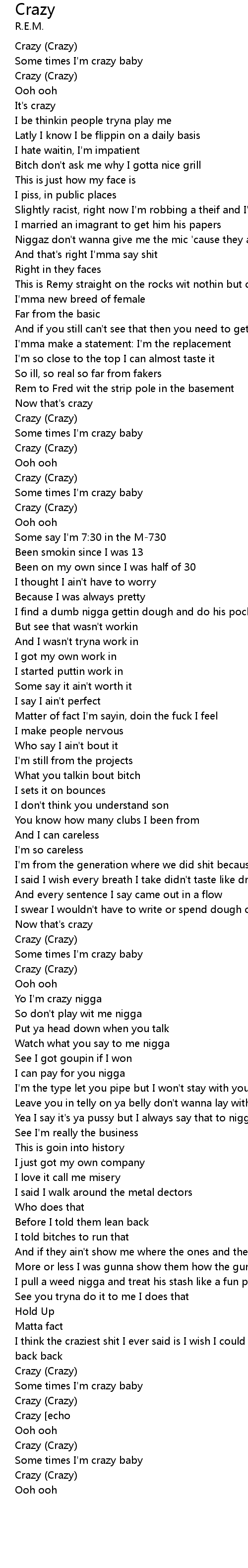 Yo I'm crazy nigga |