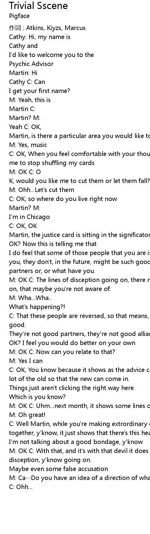 | M: OK C: With that, and it' s with that devil it does show that line, that disception, y' know going on. | |