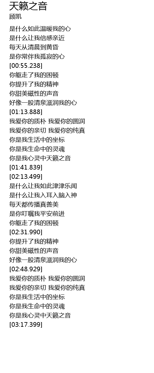| [03:05.980] | 你是我心灵中天籁之音 |