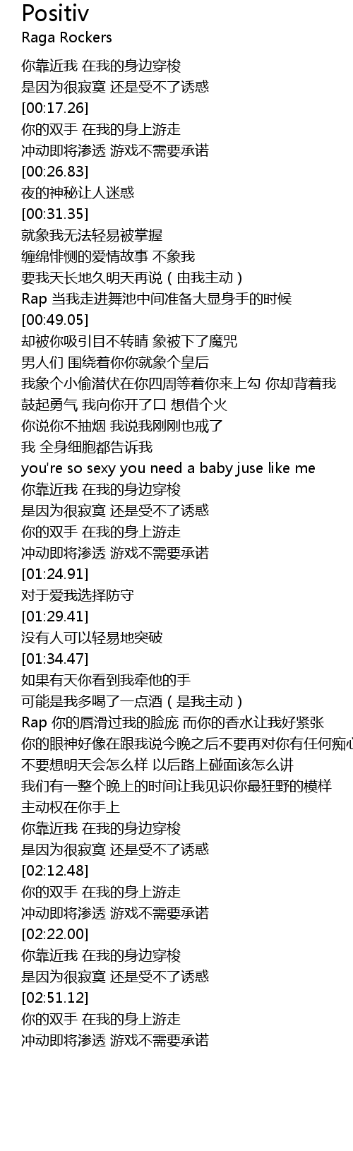 | [01:45.81] | Rap 你的唇滑过我的脸庞 而你的香水让我好紧张 |