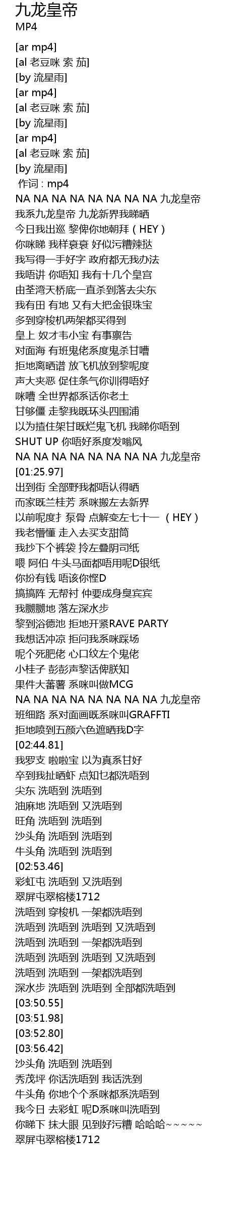 | [02:11.81] | NA NA NA NA NA NA NA NA 九龙皇帝 |