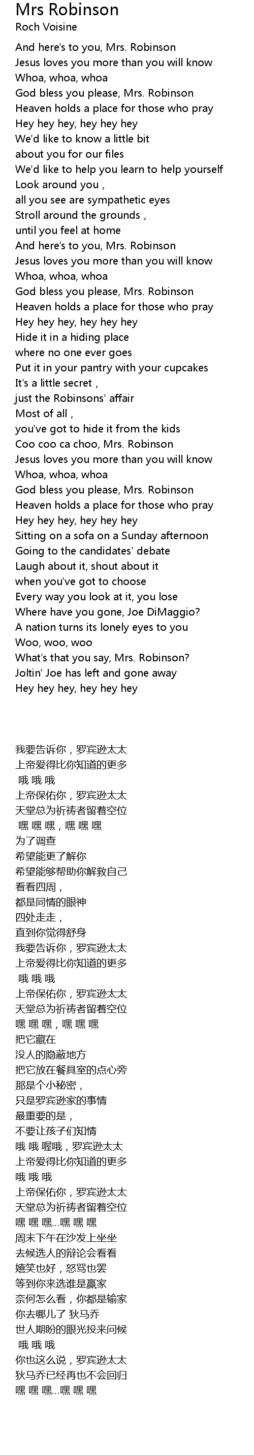 | [02:22.73] | God bless you please, Mrs. Robinson |