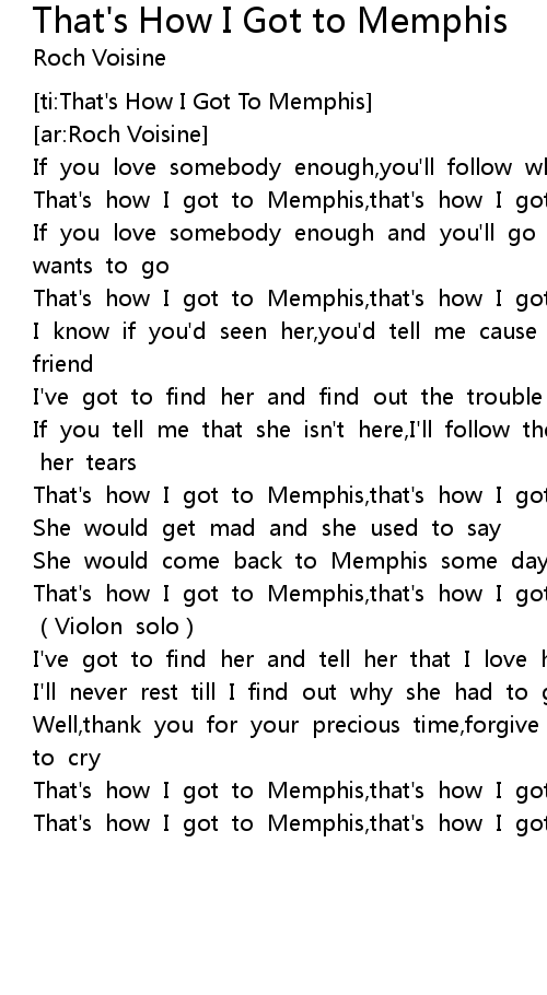 | [00:18.38] | That' s how I got to Memphis, that' s how I got to Memphis. |