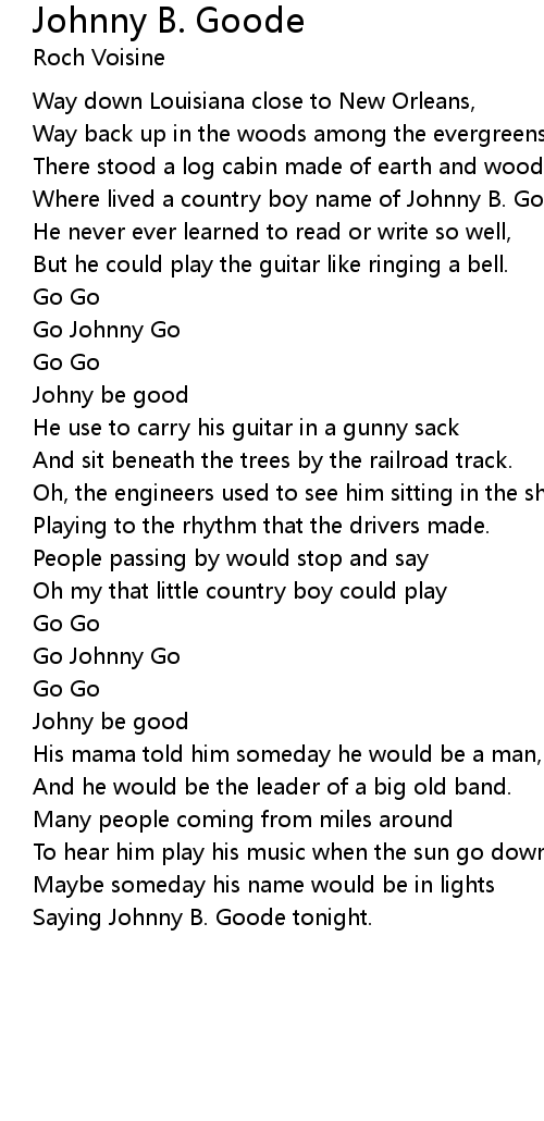 Where lived a country boy name of Johnny B. Goode... |