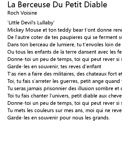 La Berceuse Du Petit Diable Lyrics