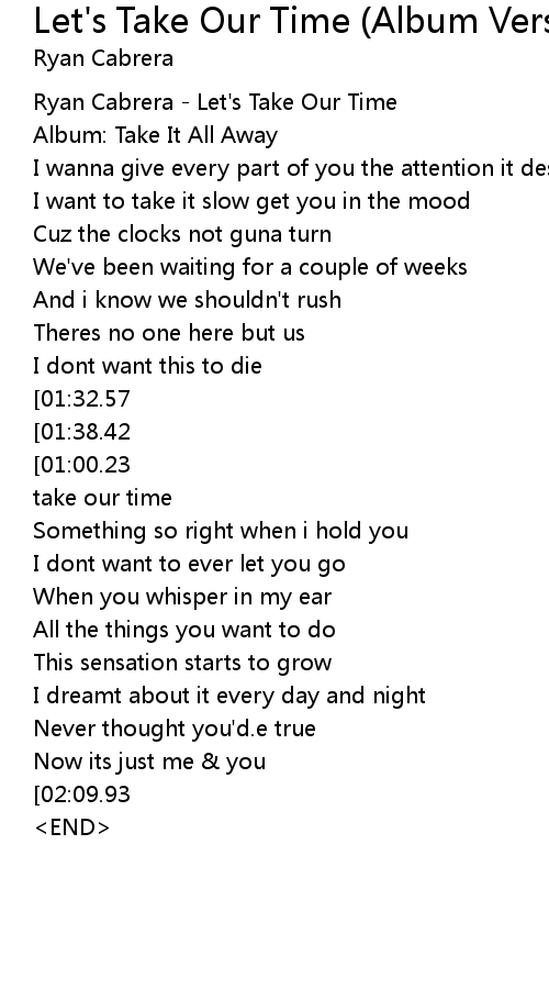 [00:00.00] Ryan Cabrera - Let's Take Our Time