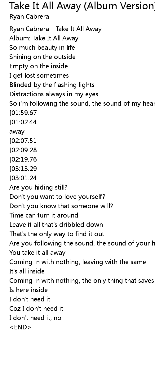 Take It All Away (Album Version) Lyrics