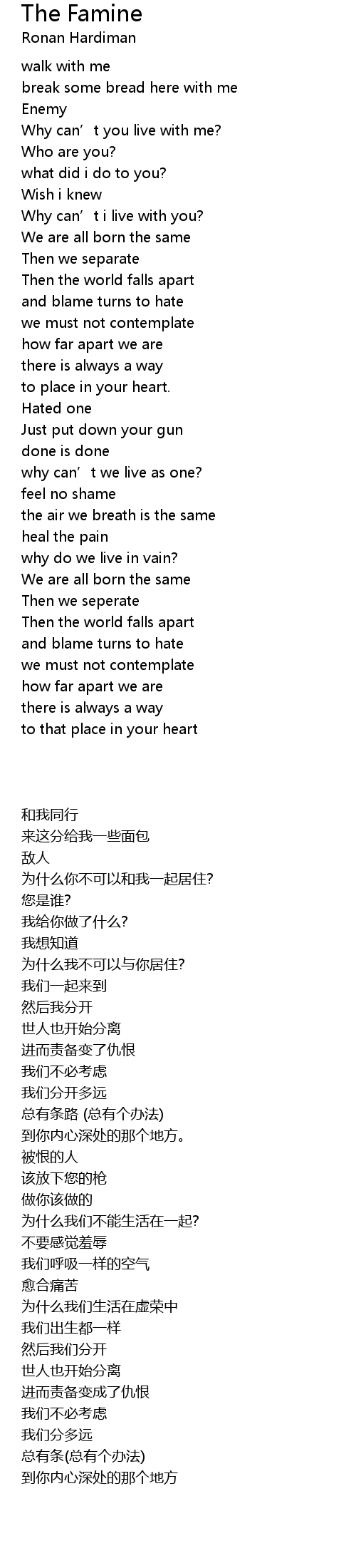 | Song | The Famine |