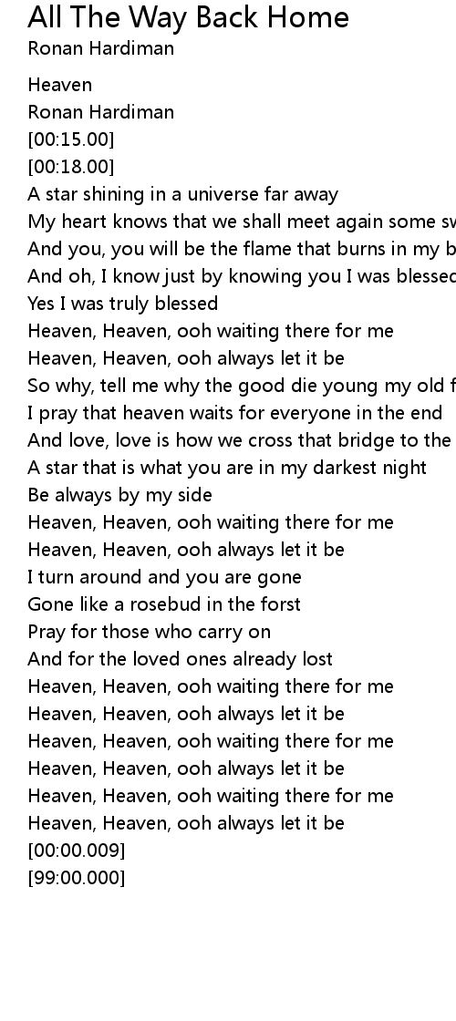 [02:51.00] Heaven, Heaven, ooh waiting there for me