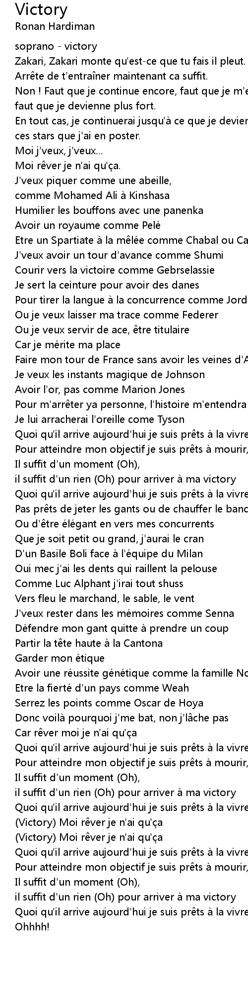 | il suffit d' un rien Oh pour arriver a ma victory | |
