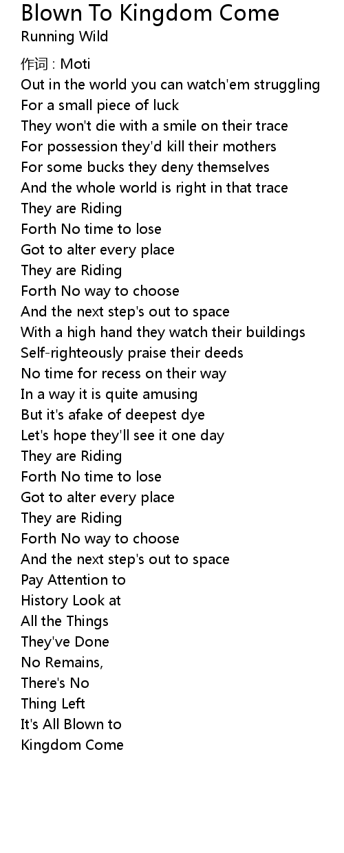 | Song | Blown To Kingdom Come |