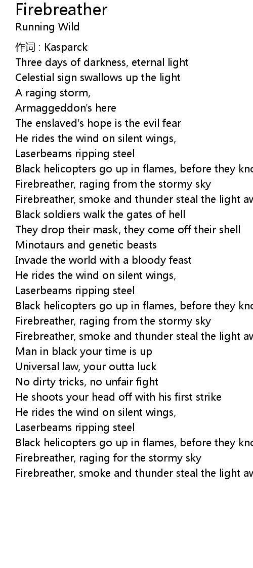 | Firebreather, raging for the stormy sky | |