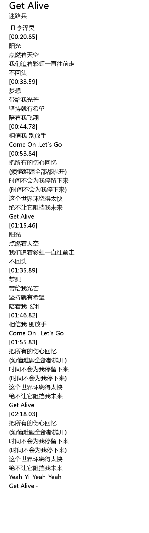 | [02:43.24] | Get Alive |