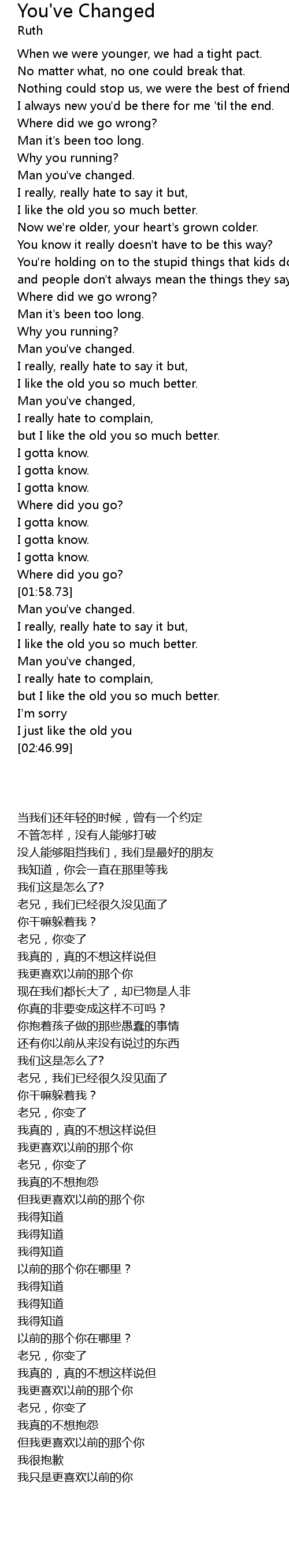 | [02:11.40] | Man you've changed. |