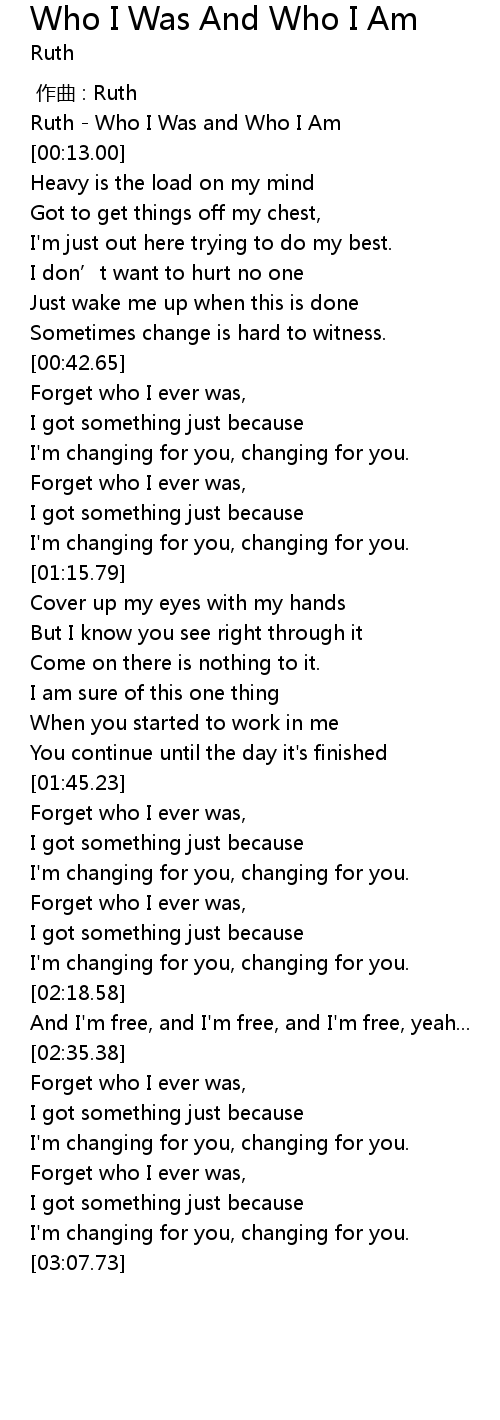 | [00:01.00] | Ruth - Who I Was and Who I Am |