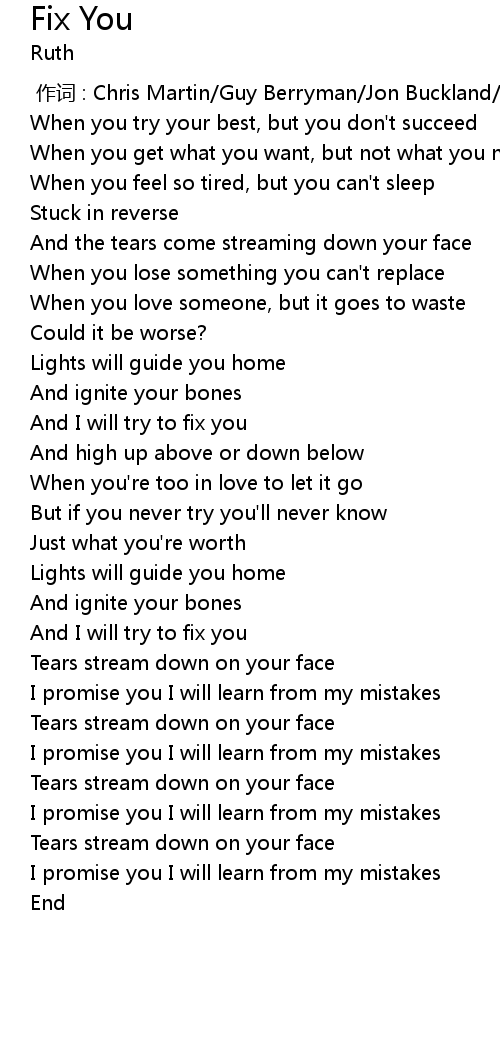 | [01:11.890] | And I will try to fix you |