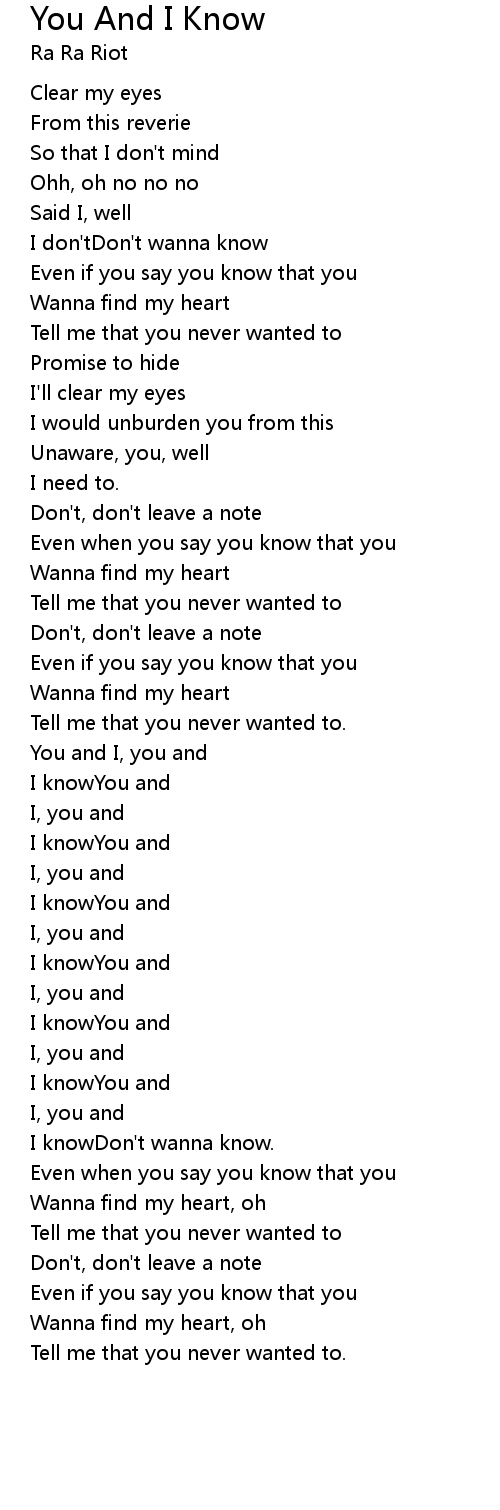 I knowYou and |