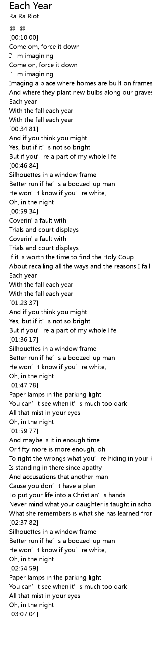 | [01:19.46] | With the fall each year |
