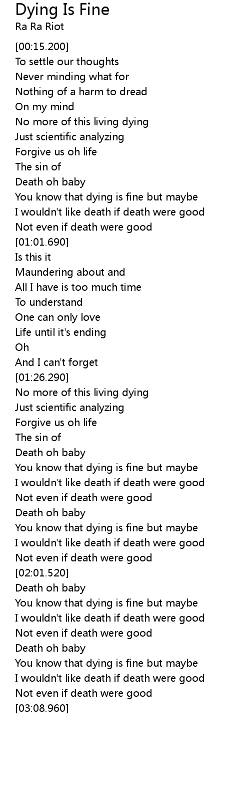 You know that dying is fine but maybe |